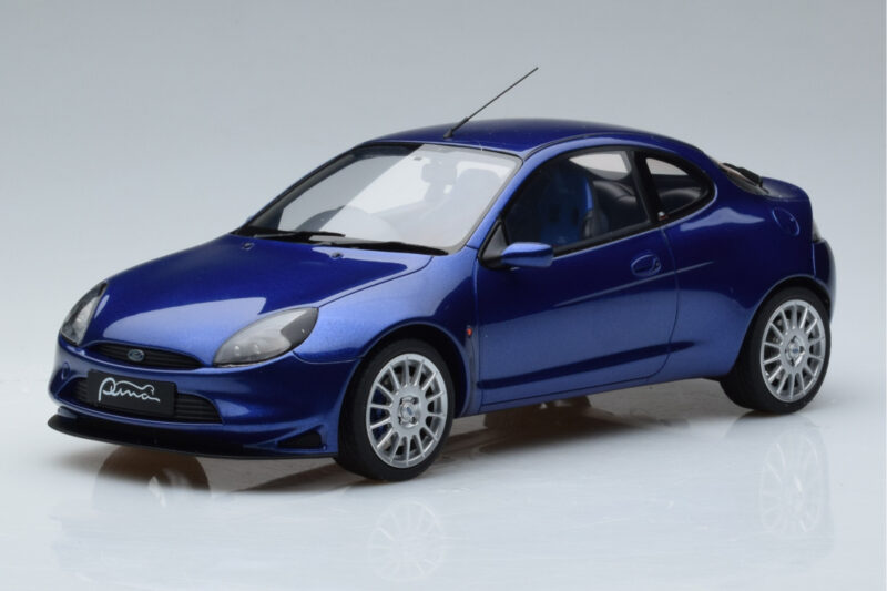 A 1:18 scale model measures approximately 25-28 cm (approximately 10-11 inches). The Ford Puma Modrý Otto 1:18 is perfect for display in a glass cabinet or on a shelf.