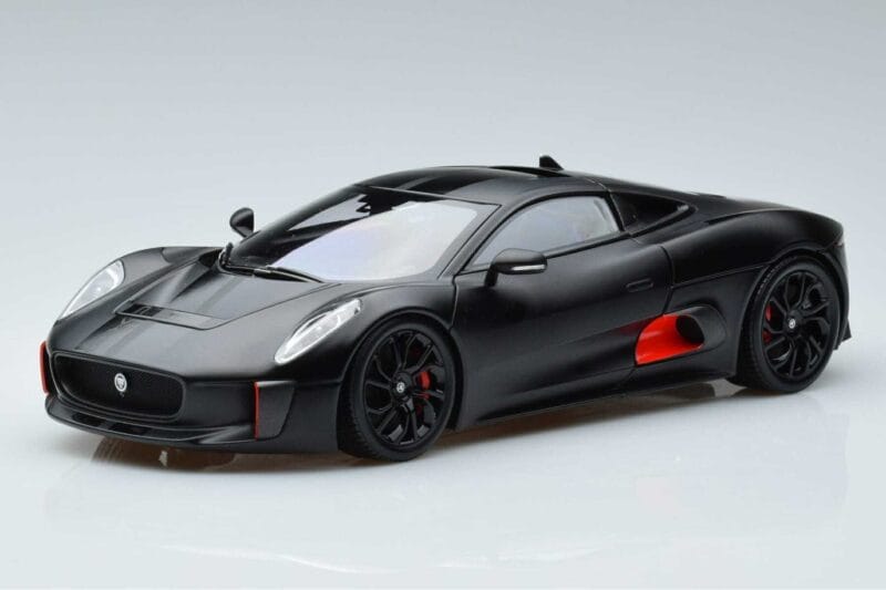 The Jaguar C-X75 Čierny Almost Real 1:18 is crafted from Kov. Die-cast zinc alloy body with detailed plastic parts, rubber tires, and high-quality paint finish. Die-cast models are known for their weight, durability, and realistic feel.