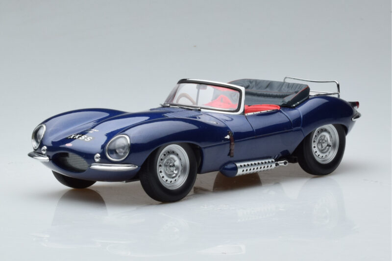 A 1:18 scale model measures approximately 25-28 cm (approximately 10-11 inches). The Jaguar XKSS Modrý AUTOart 1:18 is perfect for display in a glass cabinet or on a shelf.