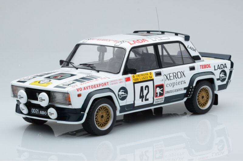 The Lada 2105 VFTS #42 S. Brundza Rally 1000 Lakes 1984 IXO 1:18 is crafted from Kov. Die-cast zinc alloy body with detailed plastic parts, rubber tires, and high-quality paint finish. Die-cast models are known for their weight, durability, and realistic feel.