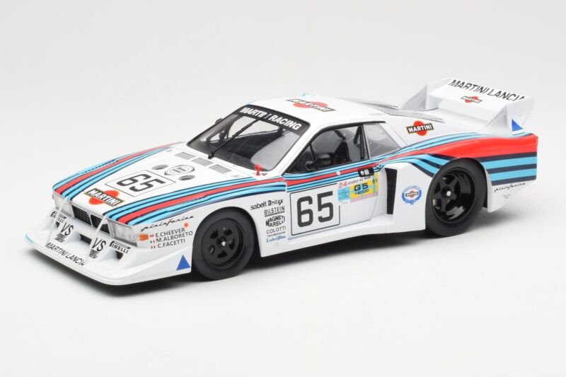 A 1:18 scale model measures approximately 25-28 cm (approximately 10-11 inches). The Lancia Beta Montecarlo Gr.5 #65 24 Hours of Le Mans 1981 MCG 1:18 is perfect for display in a glass cabinet or on a shelf.