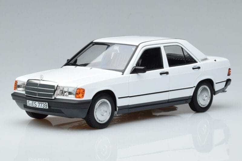 The Mercedes 190 E W201 Biely Norev 1:18 is crafted from Kov. Die-cast zinc alloy body with detailed plastic parts, rubber tires, and high-quality paint finish. Die-cast models are known for their weight, durability, and realistic feel.