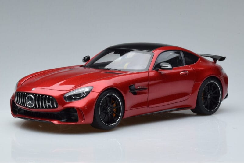 The Mercedes AMG GT R C190 Kardinálska Červená AUTOart 1:18 is crafted from Kov. Die-cast zinc alloy body with detailed plastic parts, rubber tires, and high-quality paint finish. Die-cast models are known for their weight, durability, and realistic feel.