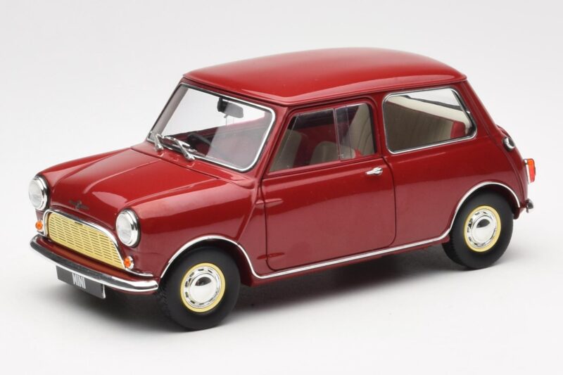 The Morris Mini Minor Červený Kyosho 1:18 is crafted from Kov. Die-cast zinc alloy body with detailed plastic parts, rubber tires, and high-quality paint finish. Die-cast models are known for their weight, durability, and realistic feel.
