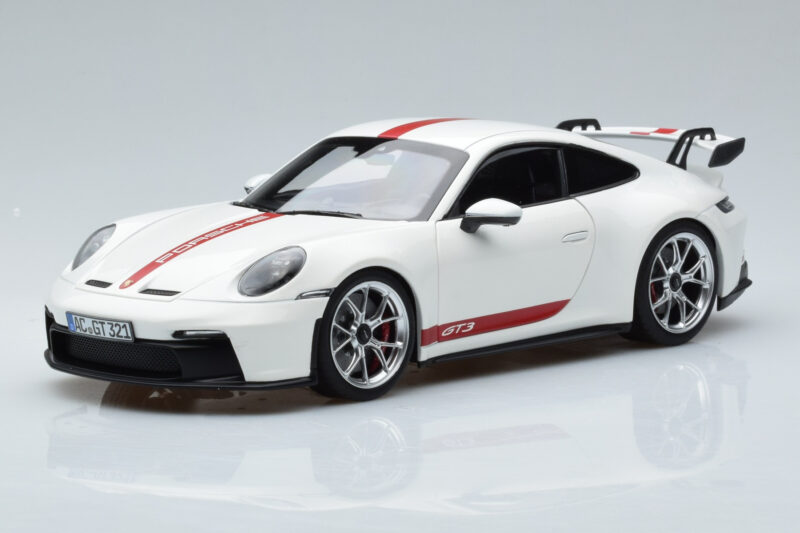 A 1:18 scale model measures approximately 25-28 cm (approximately 10-11 inches). The Porsche 911 992 GT3 Biely Norev 1:18 is perfect for display in a glass cabinet or on a shelf.
