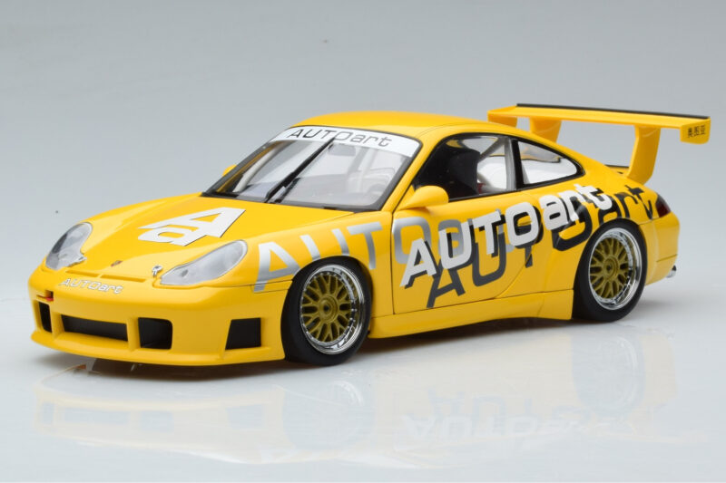 The Porsche 911 996 GT3 Cup AUTOart Livery AUTOart 1:18 is crafted from Kov. Die-cast zinc alloy body with detailed plastic parts, rubber tires, and high-quality paint finish. Die-cast models are known for their weight, durability, and realistic feel.