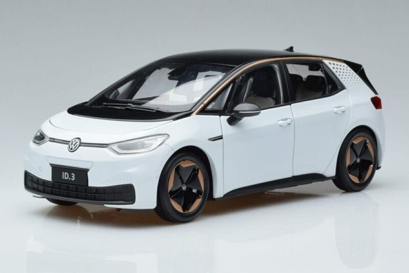 The Volkswagen ID.3 Biely FAW 1:18 is crafted from Kov. Die-cast zinc alloy body with detailed plastic parts, rubber tires, and high-quality paint finish. Die-cast models are known for their weight, durability, and realistic feel.